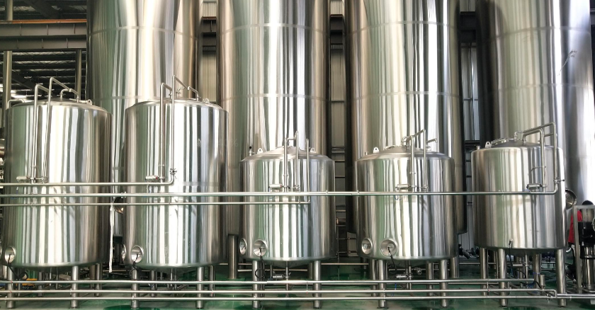 (一)、糖化设备采用三锅二器,三器、四器等设备,也可以采用烛式过滤或者使用压滤机,单次产出麦汁:15m3、30m3、80m3、100m3等,设备能力一般每天7-8批次。糖化设备包括:麦芽处理粉碎系统、糖化系统、过滤系统、煮沸系统、旋沉系统、蒸汽系统、麦汁冷却系统、自动控制系统、CIP清洗系统。所有设备均采用底部进料方式,减少物料触氧环节,所有设备外表面采用喷砂处理工艺,大方美观。(二)、发酵系统